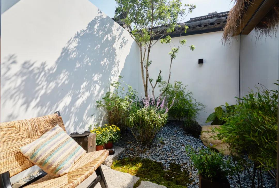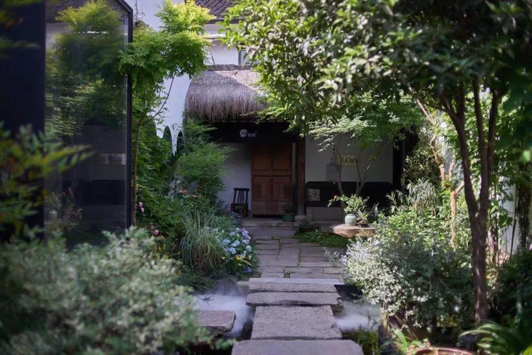 白墙黛瓦,石路绿植,